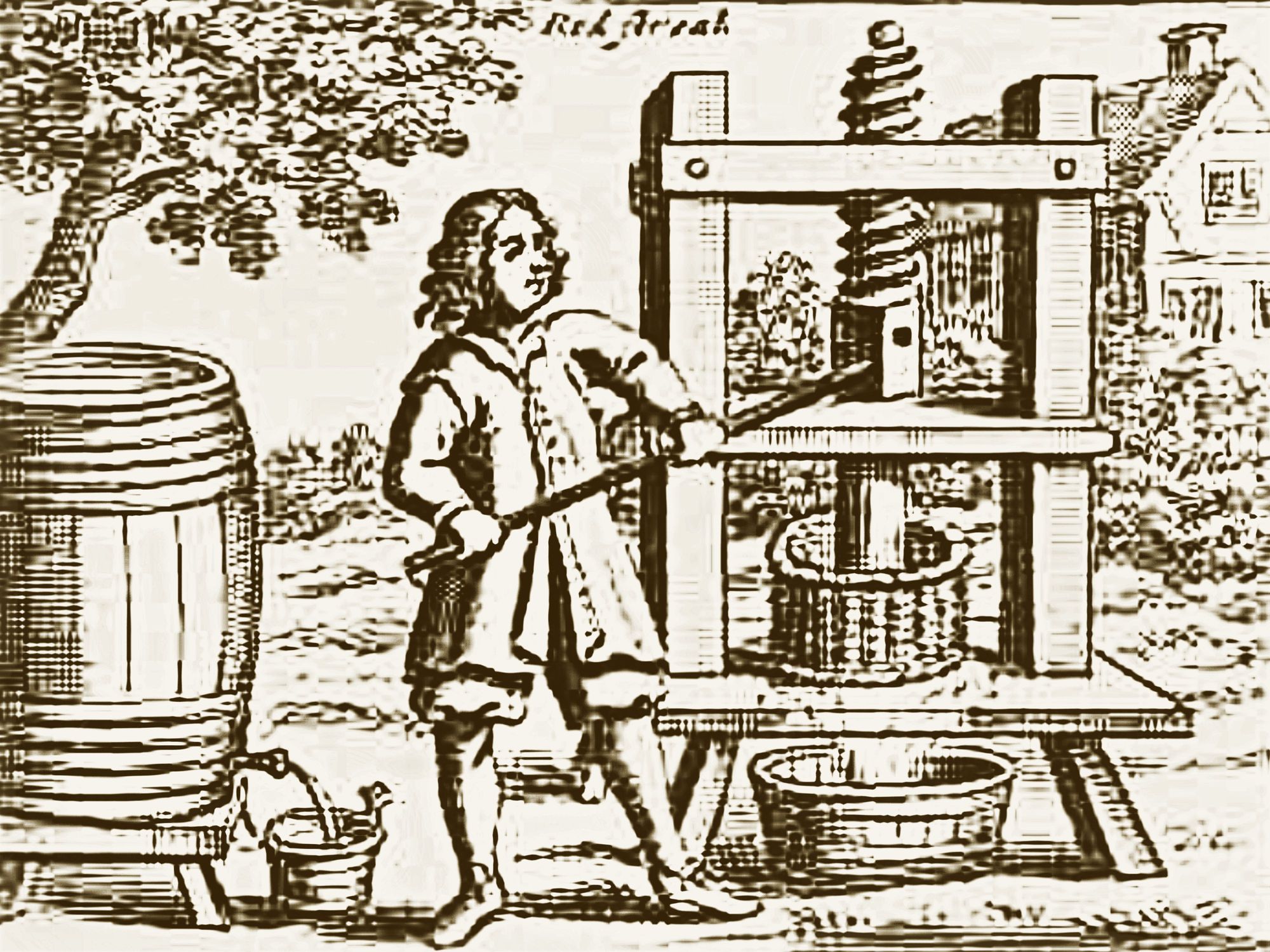 Cider mills could be found on many farms alongside the apple orchards. This common drink graced the table at every meal and was carried into the fields to quench thirst. Drawing cider for the day was a task given to the younger members of the household, though it wasn't a particularly enjoyable chore. Rules were established, such as the last one out of bed having to draw the cider for the day. Cider was drawn in small quantities as it was not considered suitable to drink once it became warm. Any good cider left at the end of the day was emptied into a barrel kept for leftovers, quickly transforming into cider vinegar.